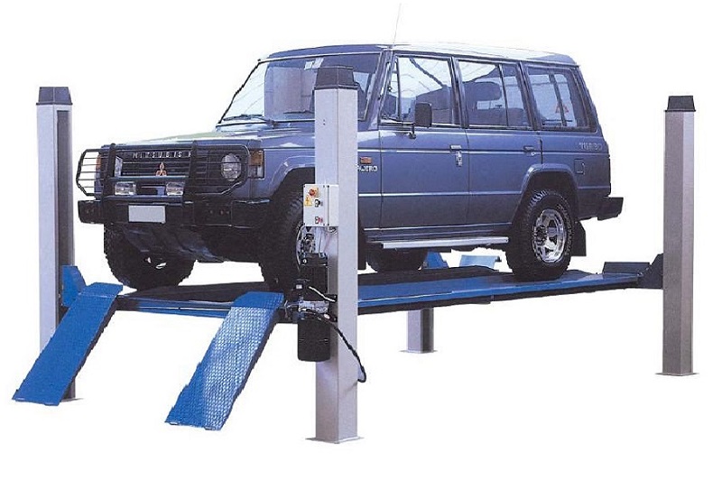 Подъемник четырехстоечный электрогидравлический одномоторный с гладкими платформами.