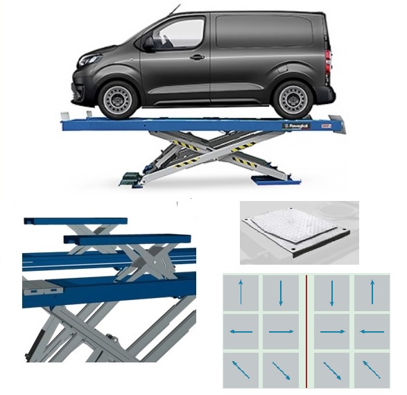 Запатентованная гидравлическая система синхронизации при подъеме платформ, независимо от распределения веса.