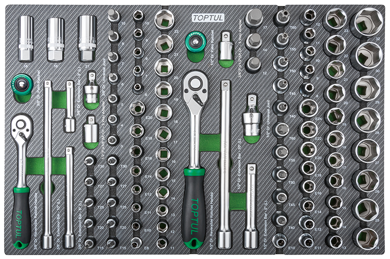 Набор головок и аксессуаров 3/8" и 1/2" 6-гр., 104 предмета в мягком ложементе (D) TOPTUL GEDA429 купить в Уфе и других городах России