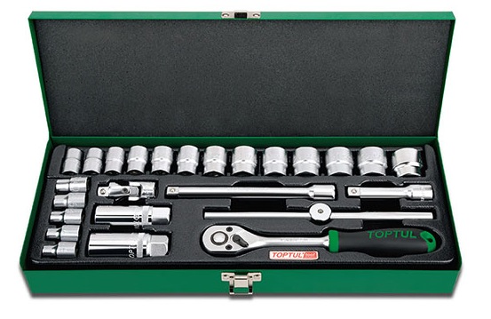 Набор головок и аксессуаров 3/8" 12-гранных 6-24 мм, 25 предметов в метал. кейсе TOPTUL GCAD2504 купить в Уфе и других городах России