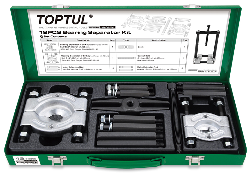 Набор съемников сепараторного типа 30-50, 50-75 мм, 12 предметов в метал. кейсе TOPTUL купить в Уфе и других городах России