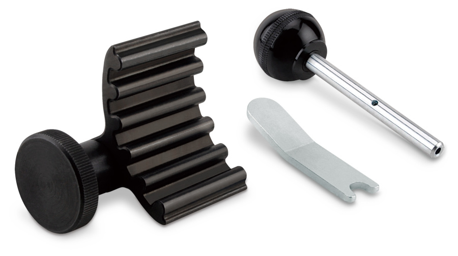 В комплект входит стопорный штифт, инструмент для фиксации натяжителя, инструмент для фиксации коленчатого вала.